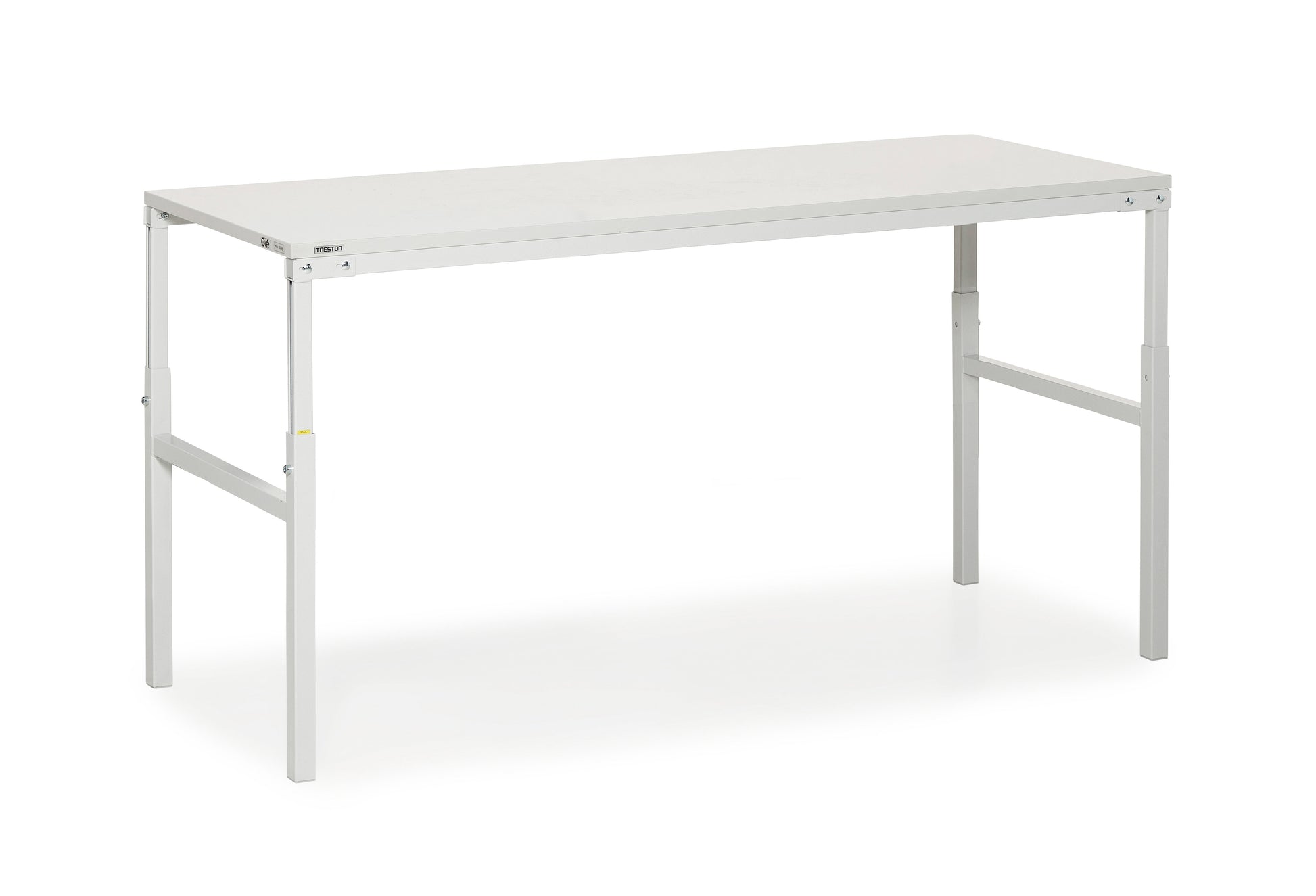 Dette TP workbench fra TRESTON, produktkode TP918, er en højdejusterbar arbejdsbænk med bordplade i lavtryk lamineret spånplade og en pulverlakeret stålramme. TP918 leveres i farven RAL7035 (light grey) og er ikke ESD-beskyttet.Beskrivelse