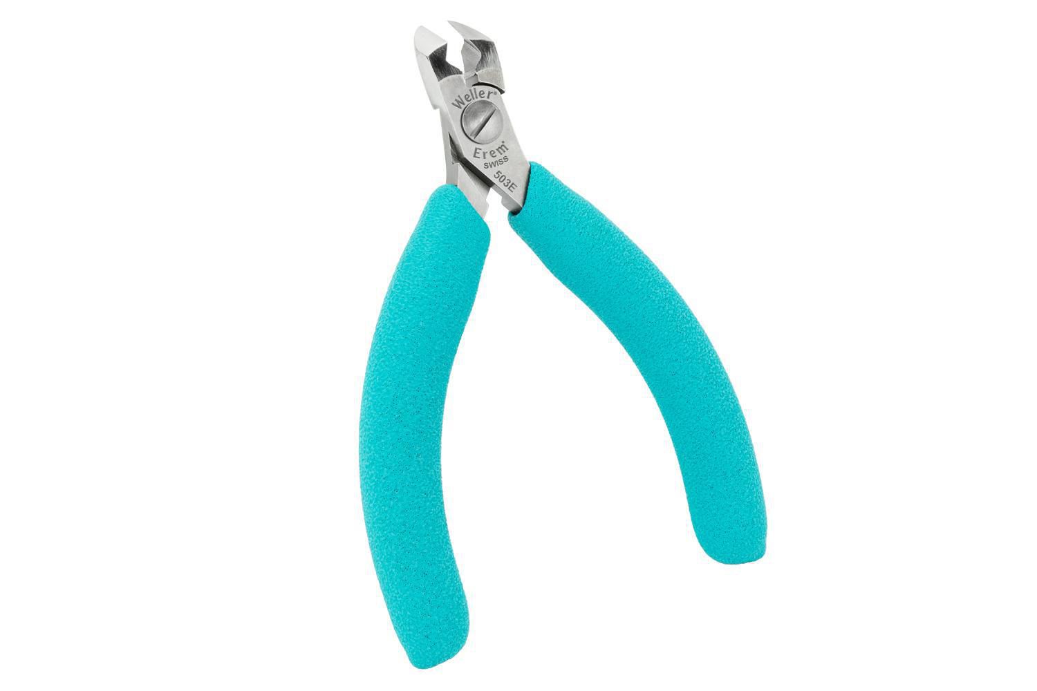 Denne 4,5 in (110 mm) ESD-sikre flush skråtstillet brede-hoved spidsskærer, model 503E, er en del af Weller Erem 500 Series og leveret af EREM. 503E er konstrueret som en præcisionsklipper med et skråtstillet hoved designet til at muliggøre præcise snit i forskellige arbejdspositioner. Materialevalg og overfladebeskrivelse er angivet af producenten.