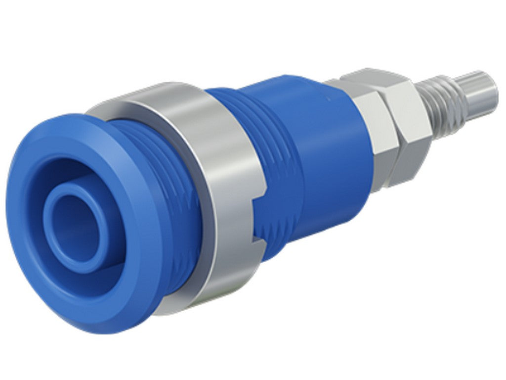 . Isoleret, stiv, Ø 4 mm, accepterer fjederbelastede Ø 4 mm propper med stiv isoleringsmuffe. Bearbejdet messing. Isoleringsmateriale UL94 V-0. Fatningen skrues i forborede paneler af plast, metal etc. Gevindbolt M4 og loddehul.