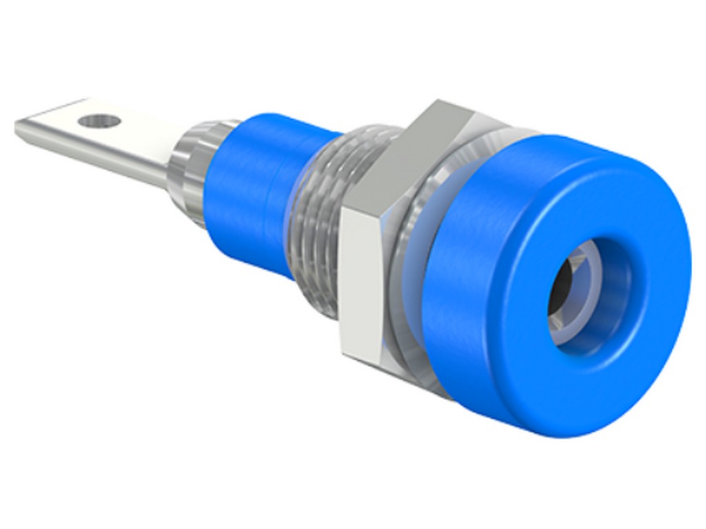. Isoleret Ø 2 mm stiv. Bearbejdet messing. Metalgevindkappe på isoleringen. Fatningen kan skrues i forborede paneler. Flad forbindelsesflig 2,8 mm x 0,8 mm.