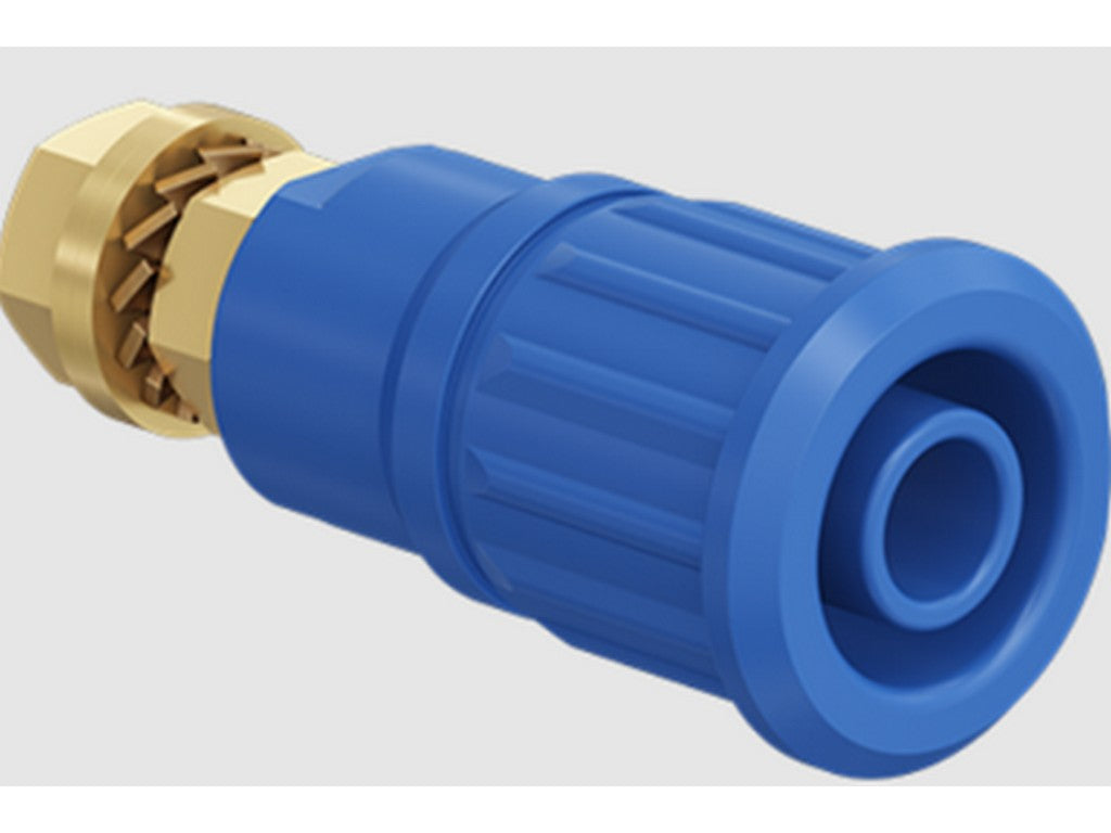 Isolerede, stive, Ø 4 mm, accepterer fjederbelastede Ø 4 mm propper med stiv isoleringsmuffe. Bearbejdet messing. Fatningen presses ind i forborede paneler af plast, metal mv. Tilslutning: Gevindbolt M4 og loddehul.