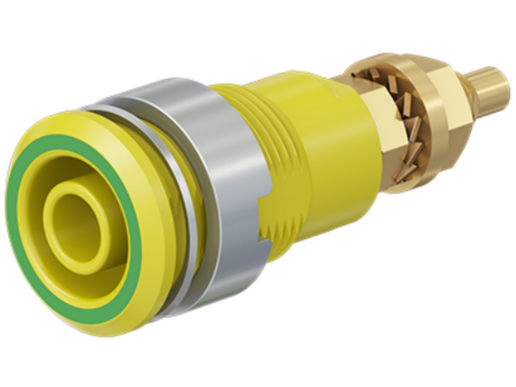 . Isoleret, stiv, Ø 4 mm, accepterer fjederbelastede Ø 4 mm propper med stiv isoleringsmuffe. Bearbejdet messing. Isoleringsmateriale UL94 V-0. Fatningen skrues i forborede paneler af plast, metal etc. Gevindbolt M4 og loddehul.
