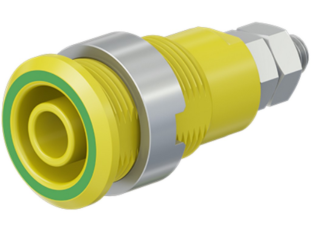 Isoleret, stiv, Ø 4 mm, accepterer fjederbelastede Ø 4 mm propper med stiv isoleringsmuffe. Bearbejdet messing. Isoleringsmateriale UL94 V-0. Fatningen skrues fast i forborede paneler af plast, metal mv. Tilslutning: Gevindbolt M4 og loddehul.
