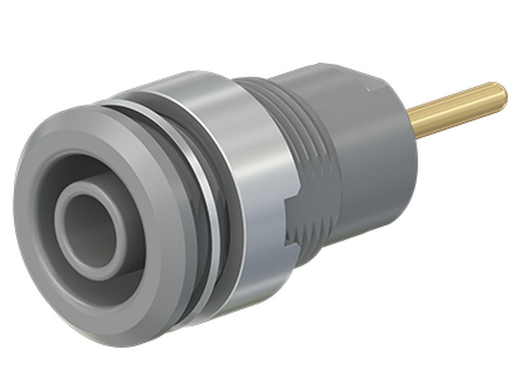 . Isoleret, stiv, Ø 4 mm, accepterer fjederbelastede Ø 4 mm propper med stiv isoleringsmuffe. Bearbejdet messing. Isoleringsmateriale UL94 V-0. Fatningen skrues i forborede plader af plast, metal etc. Rund forbindelsesstift Ø 1,9 mm.