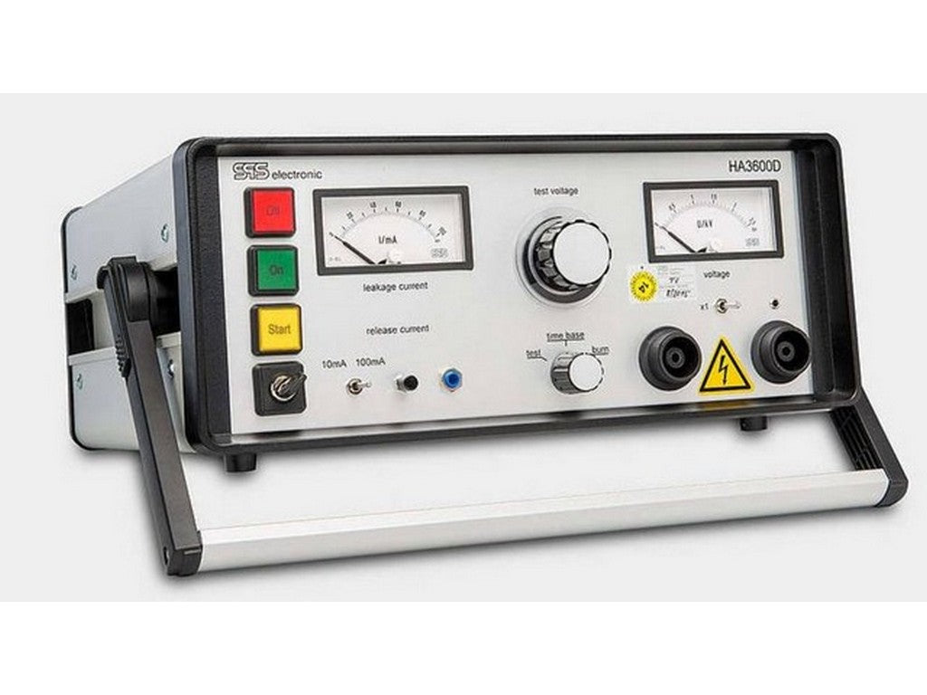 . Den klassiske hipot-tester med analogt display. Den analoge hipot-tester HA 3600D - reduceret til det væsentlige og ideel til manuelle og bærbare applikationer. Den klassiske enhed er kendetegnet ved sin lave pris og kompakte størrelse. Hipot testeren HA 3600D er reduceret til de vigtigste funktioner og dermed en rigtig klassiker. Den er ideel til hurtige, billige og nemme sikkerhedstests i henhold til nationale og internationale standarder (IEC, EN, UL, VDE osv.). Klassisk - ukompliceret - afprøvet og testet HA 3600D tilbyder enkel betjening gennem de analoge displayinstrumenter for spænding og strøm. Ved hjælp af en drejeknap kan testspændingen hurtigt og nemt indstilles. Testen kan startes via testpistolerne eller 24 V-interfacet; en visuel og en hørbar alarm aktiveres. Testresultatet PASS / FAIL kan forespørges via 24 V-interfacet. Til særligt spændende opgaver HA 3600D har ifølge mange internationale standarder en effekt på over 500 VA ved en kortslutningsstrøm på 100 mA / 200 mA. Enheden er CE-konform til brug i henhold til EN 50191. Med et ergonomisk hus er den bærbare HA 3600D ideel som en bærbar stationær enhed.