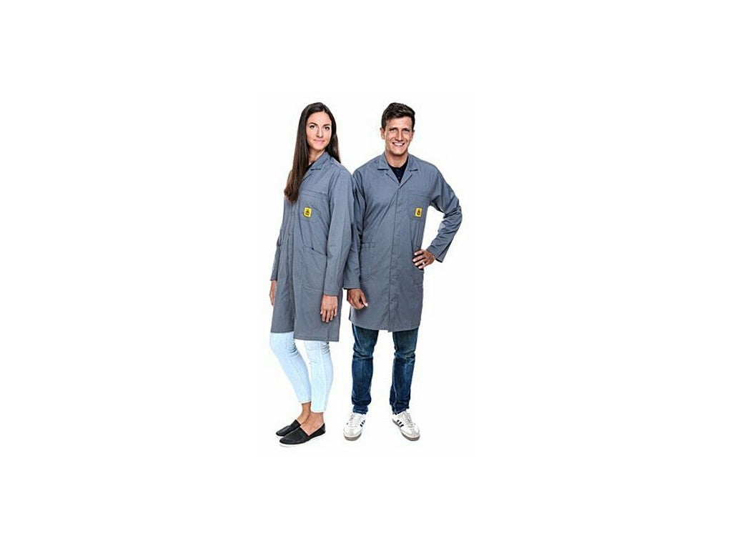 . Vores SafeGuard ESD-kitler er lette, åndbare og derfor behagelige at have på. Pro Line har en basisvægt på 146 g/m2. Derudover er de to sidelommer og den skjulte række af knapper meget praktiske, ESD-logoet er broderet på brystlommen. ESD kitlen opfylder naturligvis kravene i DIN EN 61340-5-1.