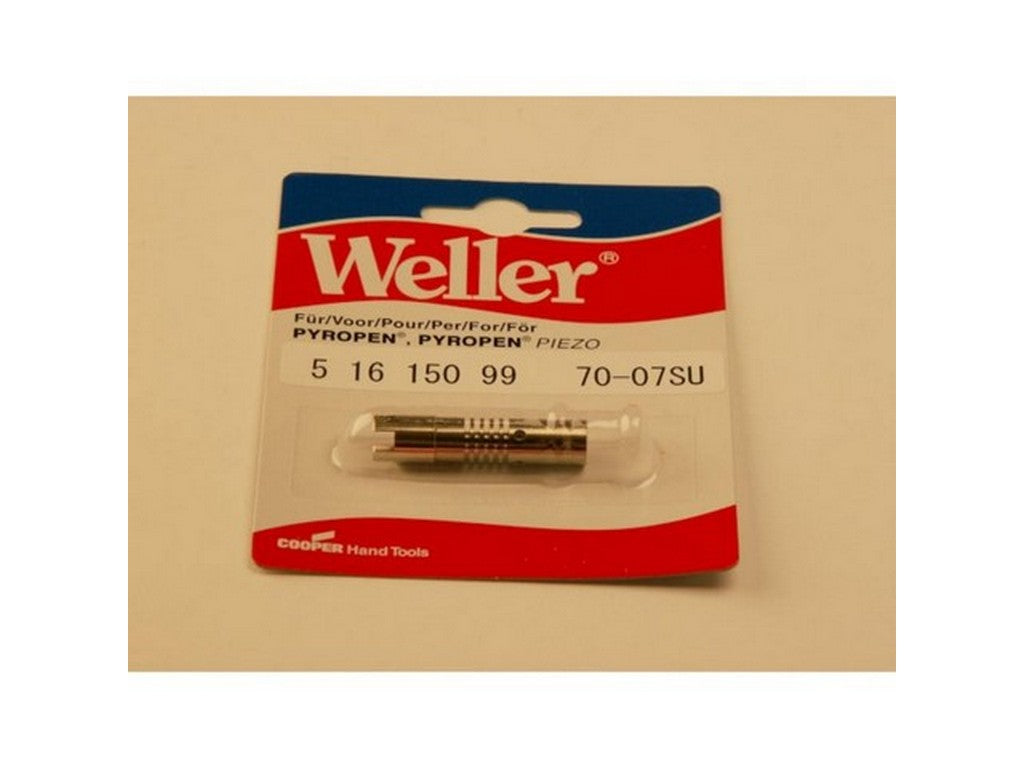 Denne loddyse fra Weller, 70-07SU (T0051615099), er en udskiftelig loddedyse beregnet til Pyropen-håndtag. Produktet er angivet af producenten som "Lötdüse für Pyropen, nicht für Piezo-Version" og er dermed ikke kompatibel med Piezo-versionen af Pyropen. 70-07SU leveres enkeltvis i emballage og er en del af Weller produktfamilie Pyropen Lötspitzen.Dokumentation