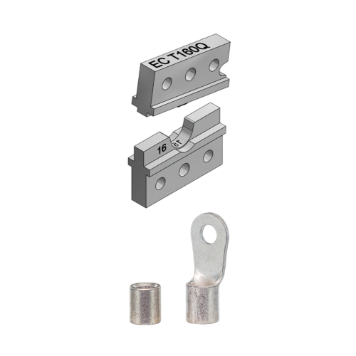 GLW Crimping die set EC T160Q fungerer som udskiftelige krimpematricer til værktøjssystemer, der anvender diesæt til kompressionskabelsko. Diesættet er angivet direkte som egnet til kompressionskabelsko med den specificerede tværsnitsstørrelse 16 mm².