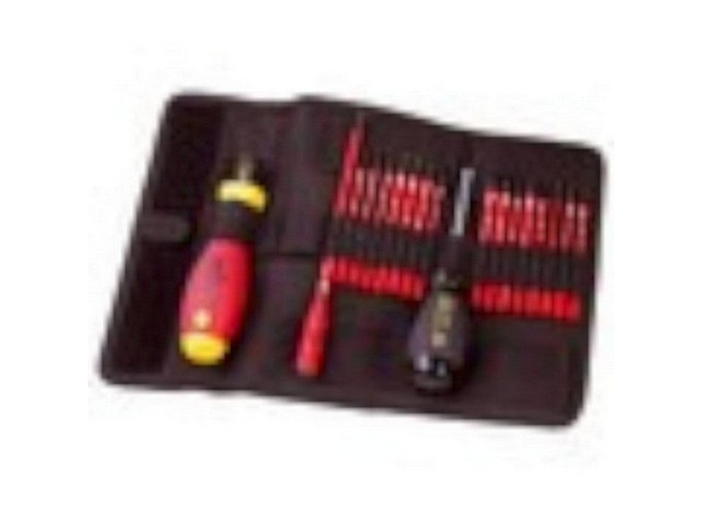 Laus moment skruetrækkersæt. SlimTorque startsæt, 18-pcs Torque værdi kan indstilles via vinduet skala. Med slimTorque VDE bitholder til 6 mm slimBits. VDE Momentdrejegreb 1.0 - 5.0 Nm, trinløst med Torque Setter justering værktøj. Til kontrolleret fastskruning ved spændingsførende dele op til 1.000 V AC ved koblingsapparater. Produceret iht. IEC 60900.DIN EN ISO 6789.