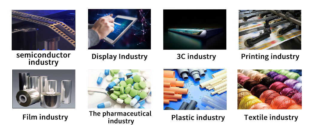 Anvendelsen af KF-100AR er specificeret af producenten som statisk eliminering og partikelkontrol. Produktteksten angiver eksplicit, at enheden er beregnet til at fjerne statisk elektricitet og kontrollere partikler ved hjælp af ionisering.Specifikationer