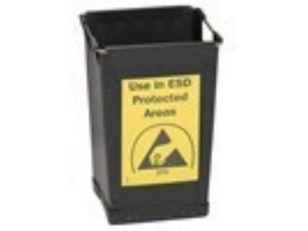 . BIN, AFFALD, LEDENDE, 25CM x 25CM x 40CM Fremstillet af ledende træfiberplader 2mm tyk Rg: < 10E6 ohm Forstærket med metalbøjle i toppen Nederste hjørner er forstærket og forsynet med rundhovedede metalknopper som fødder