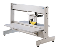MAESTRO 3E fra CAB er en manuel PCB-separator designet til at separere små og store trykte kredsløb med en forfræset (V-) rille. Separation udføres med en cirkulær klinge på komponent-siden og en lineær klinge på lodde-siden. Enheden er beregnet til FR4-materiale og har en maksimal separationslængde på op til 450 mm.