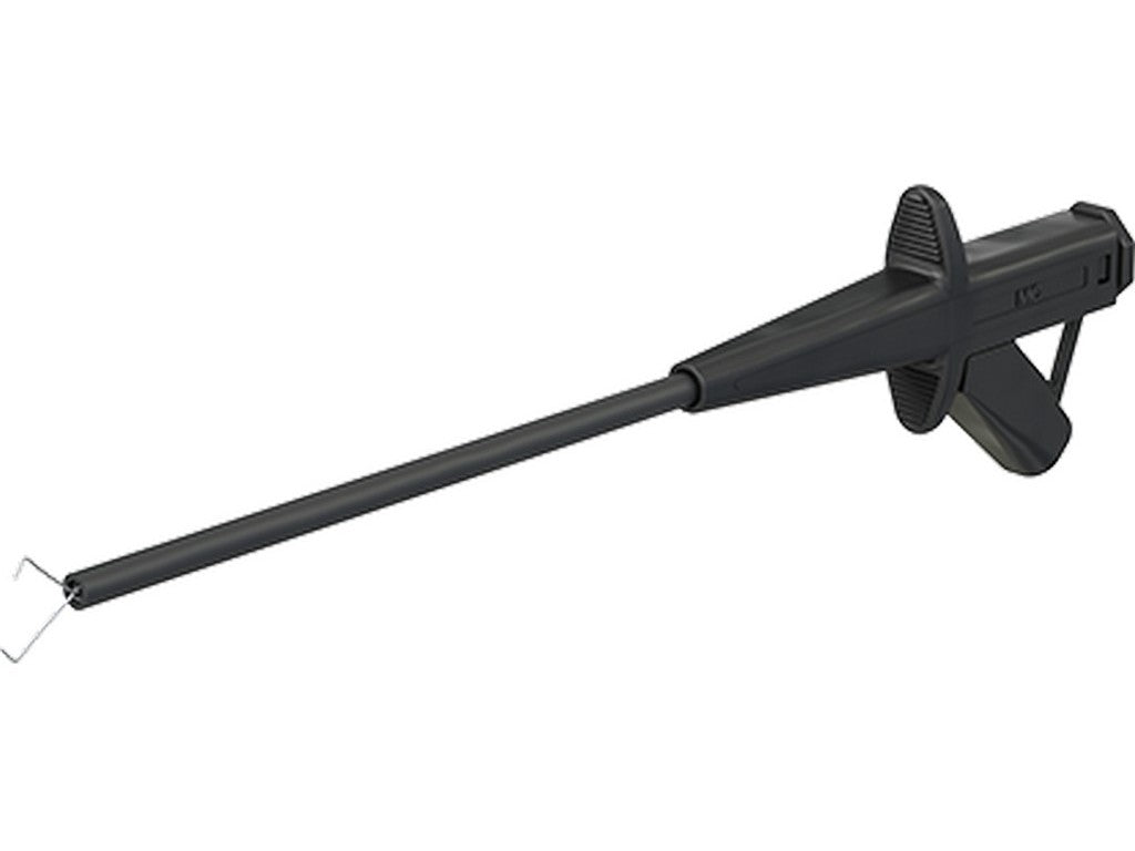 . Med fleksibel aksel og fjedertrådsgriber (rustfrit stål) for god kontakt til stifter og ledninger på utilgængelige steder. Specielt velegnet til måling af spændinger. Skaftet er silikoneisoleret og garanterer god varmebestandighed og fleksibilitet selv ved lave temperaturer. Ø 4 mm stiv fatning i håndtag accepterer fjederbelastede Ø 4 mm stik med stiv isoleringsmuffe.