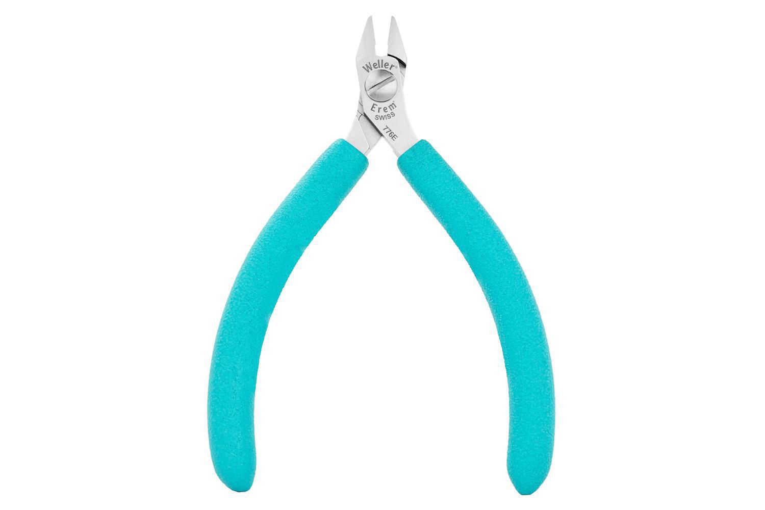 Denne 4-1/4" ESD-safe super full-flush short pointed relieved head tip cutter fra EREM (Item No. 776E) er en miniature præcisionstang beregnet til mikroelektroniske opgaver. 776E er en del af Weller Erem Series 600 Micro-sortimentet og har en smal, lettilgængelig hovedform designet til adgang i svært tilgængelige områder.Materiale og konstruktion