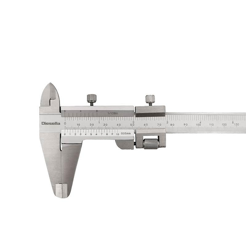 Diesella 10134200 er en analog skydelære fra DIESELLA med måleområde 0–200 mm og 0,05 mm nonius. Produktet er en standard analog model i rustfrit stål med skruelås og finjustering, beregnet til præcise lineære målinger og med tilhørende opbevaringskasse.Funktion og opbygning