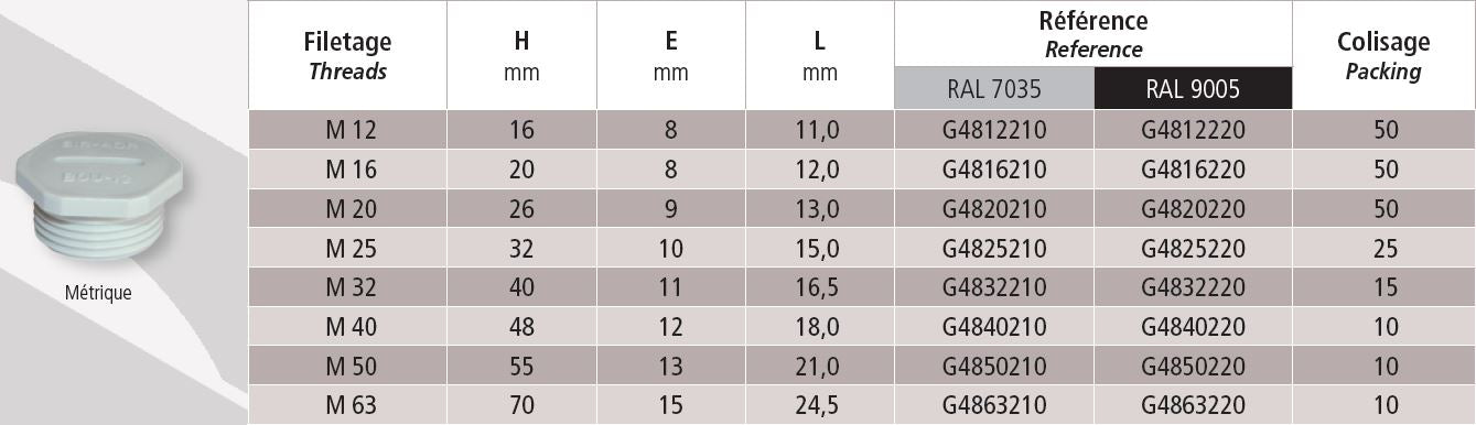 • Teknisk dokumentation: G4800200 (A) BOUCHON PA6-6 PANS ISO (opført af producenten).