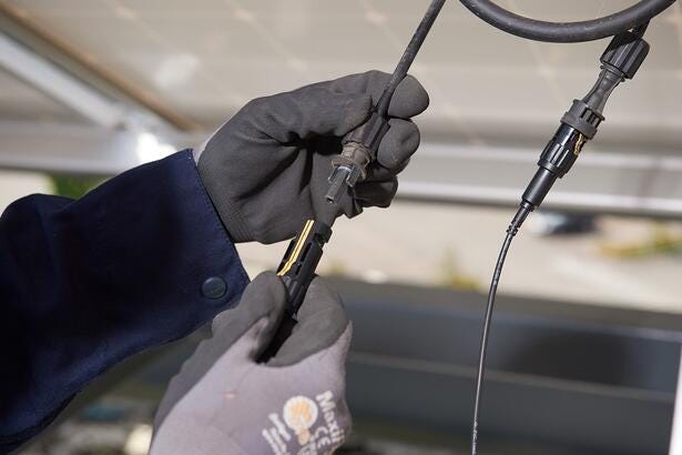 The 393 FC CAT III 1500 V True-rms Clamp Meter with iFlex is an industrial clamp meter designed for solar photovoltaic (PV) installation technicians and maintenance professionals who work in high voltage dc environments. Safely connect the MC4 test leads to the clamp meter to validate voltage and current from individual panels or a series of panels in a PV array. The inline capabilities of the MC4 PVLEAD3 leads allow the system to remain online and generating power while testing without needing to pierce the line. Use the IRR1-SOL to obtain the amount of solar irradiance necessary to calculate the IV curve of the power output. Validate that the panel or string of panels are outputting the correct voltage.