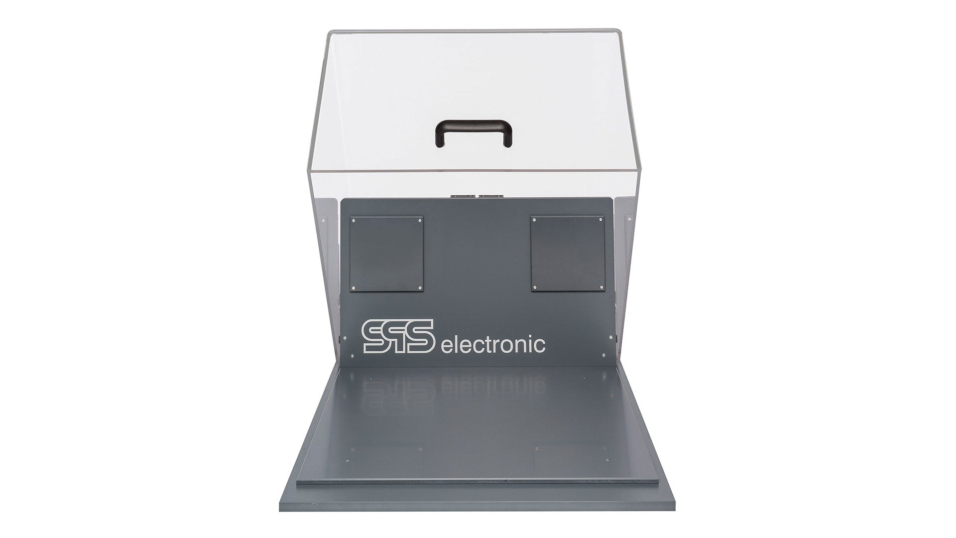 For test station installations in which a necessary protection against contact is required, test hoods are especially well suited. Through the test hood the DUT cannot be touched during the generation of dangerous voltages. Once the test hood is opened there is a forced switch-off of the dangerous voltage.