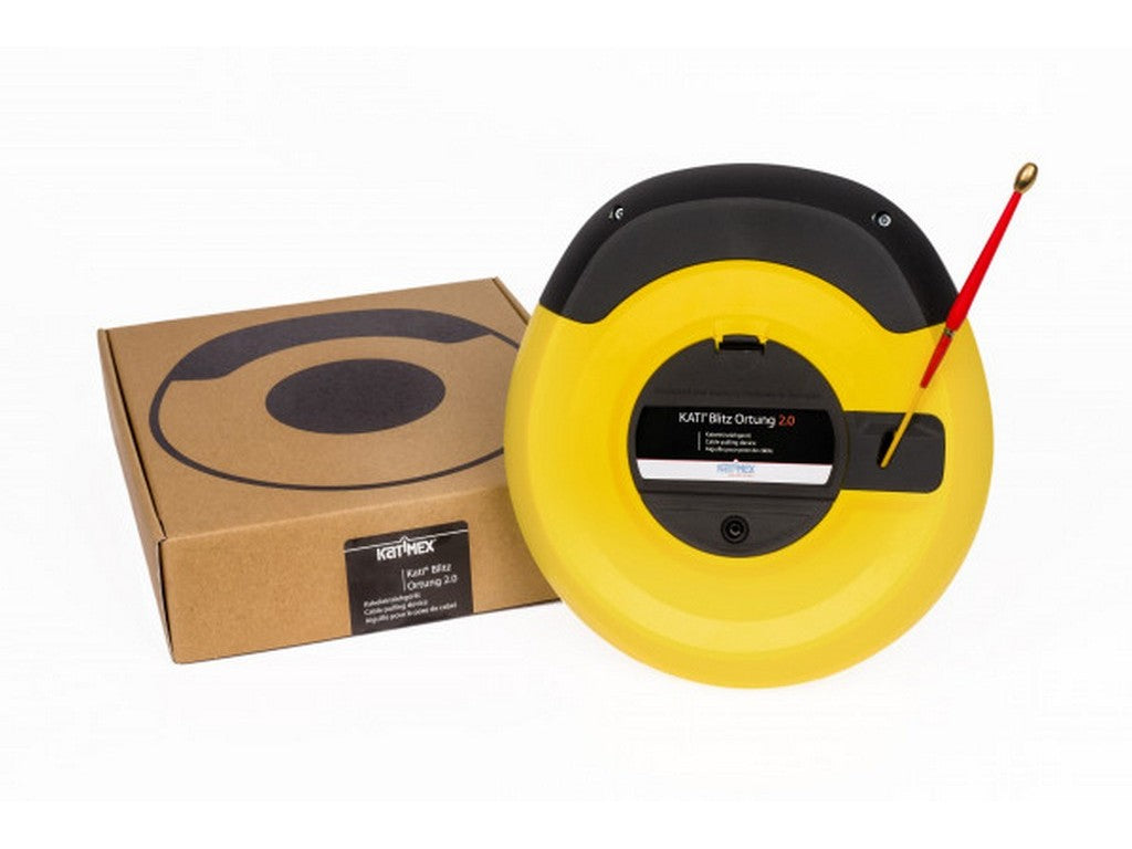 The Kati® Blitz Locating 2.0 is an upgraded cable pulling and locating device. It features a slip ring transformer and Polykat® fiberglass profile with integrated copper wires for cable pulling and route tracking. Compatible with standard cable detectors. Improved design with easy winding and narrow bending radius. Reinforced rod guide for durability. Includes accessories and maintains high Katimex® quality. Compatible with existing Kati® Blitz accessories. One device, two applications.