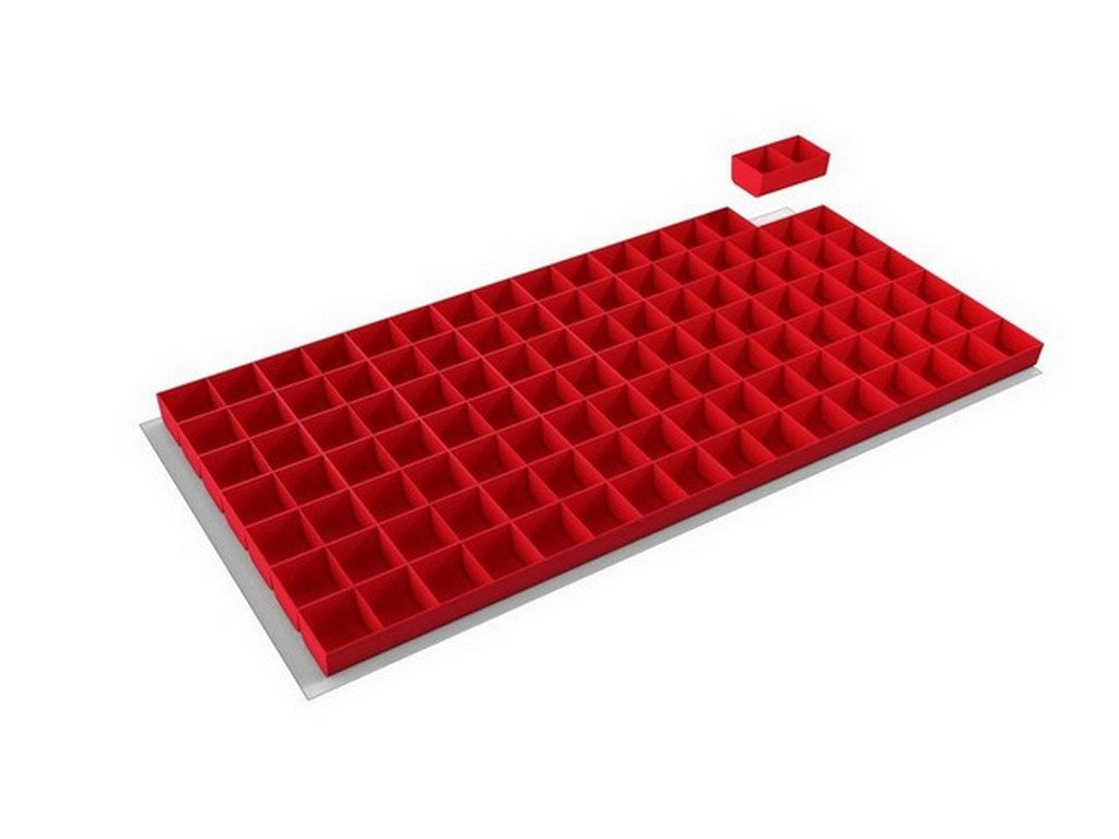 . 56 plastic pick-up boxes for storing small items in a drawer. Dividers included.