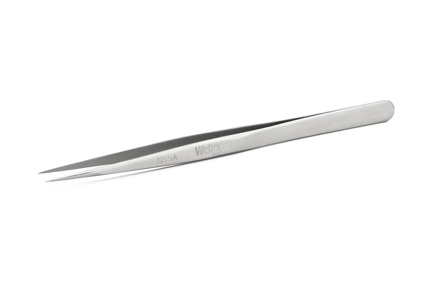 . Precision tweezers with long, narrow grips and low tension, responds to minimal pressure