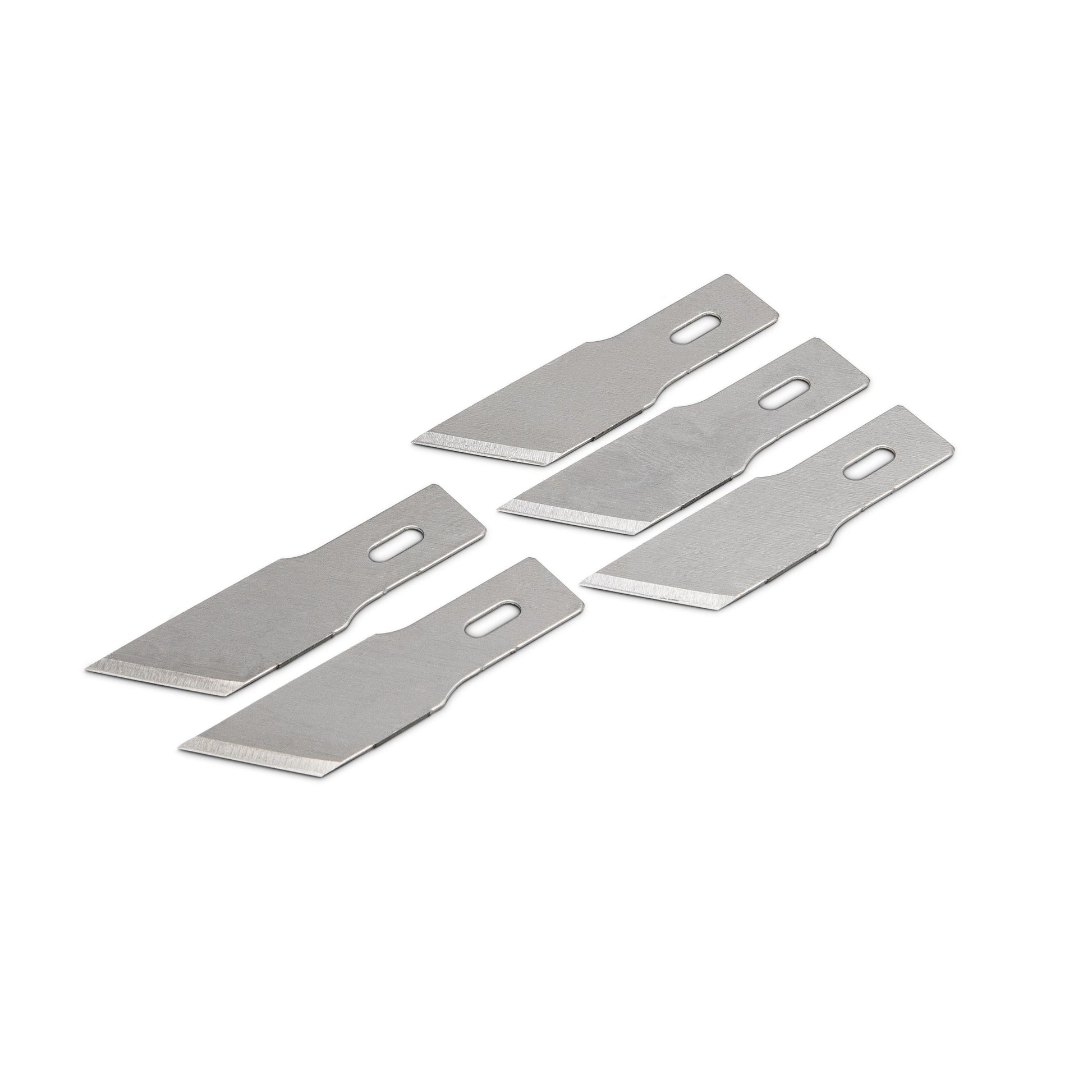 Produktet er pakket og kortlagt i henhold til producentens angivelse: fem klinger pr. beholder, leveret i gennemsigtige plastikbeholdere og carded. Det angives eksplicit som erstatningsklinger til medium-duty precision knife (XN200).